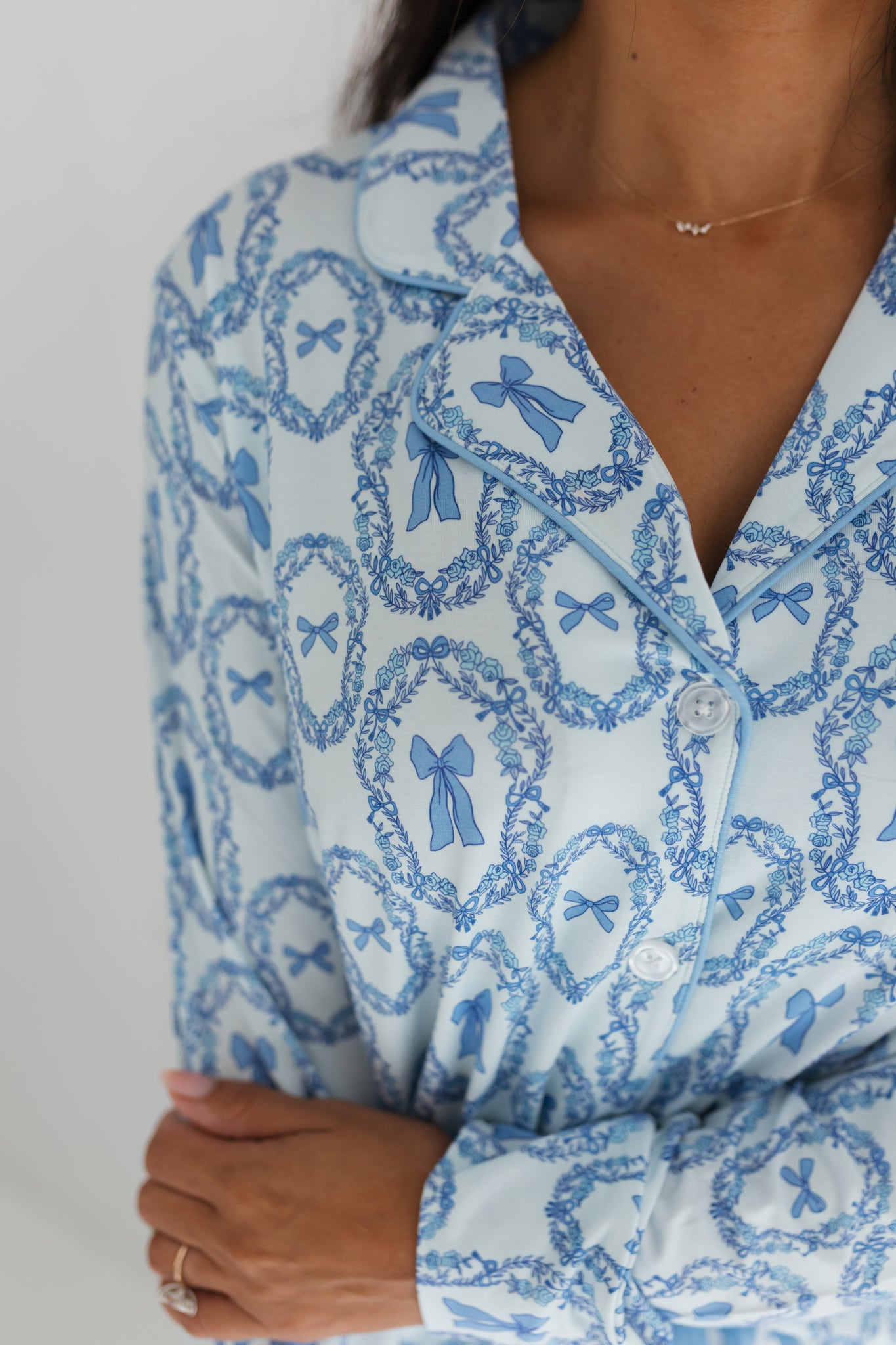 Meet Julia Bow, a classic blue bow print that brings a touch of timeless charm to bedtime. This elegant design features soft blue bows framed in delicate floral wreaths for a look that feels sweet, polished, and perfect for every season. Made with our signature viscose from bamboo, Julia Bow is breathable, silky soft, and gentle for even the most sensitive skin.