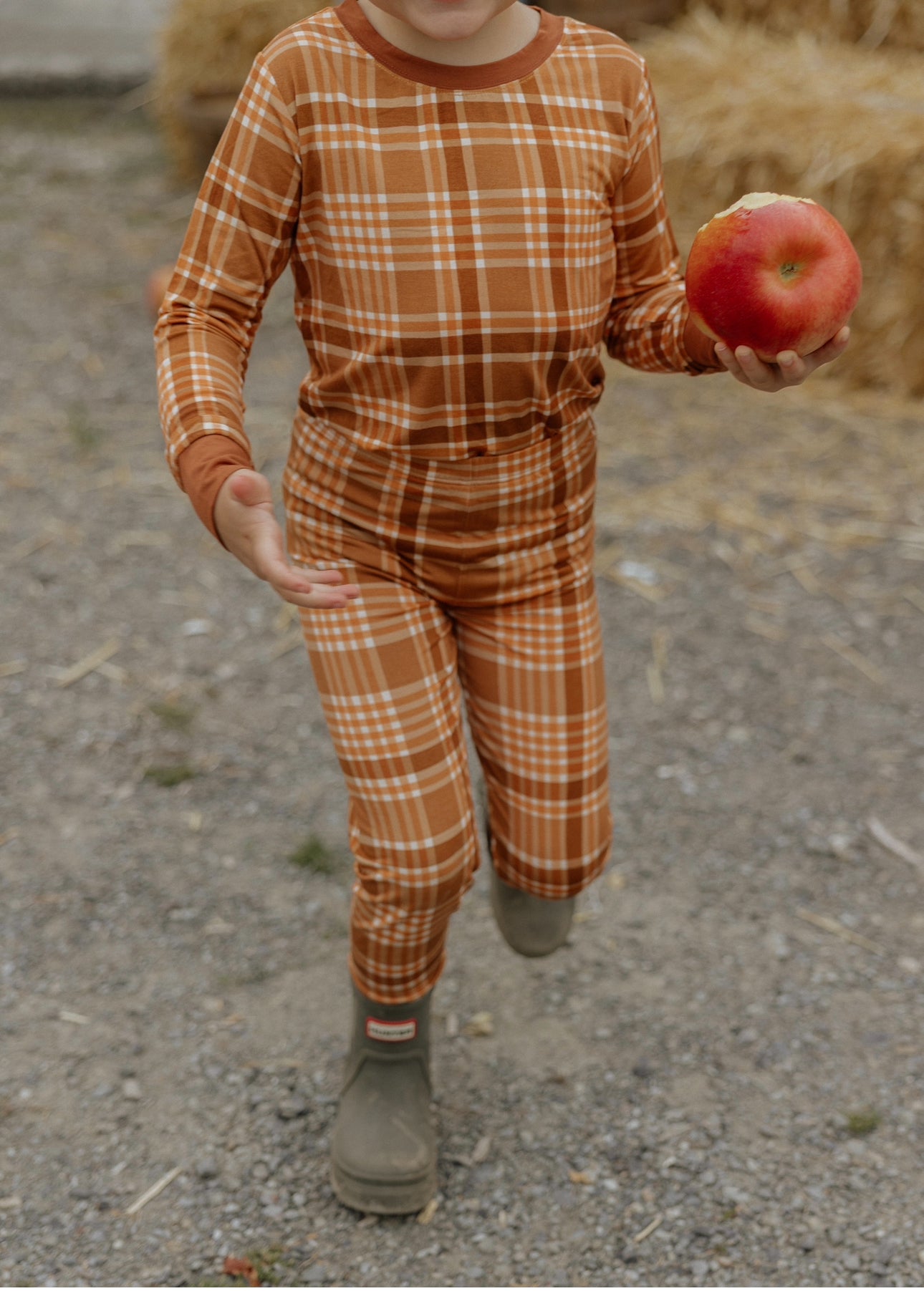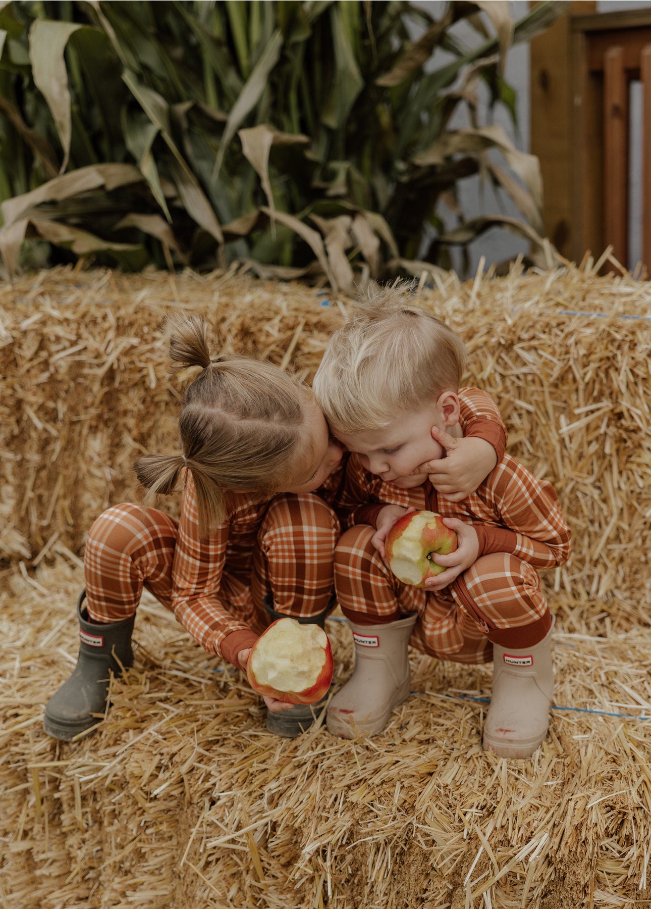 Say hello to Caramel Dipped, the first print in our Bre Sheppard Collaboration. This cozy, gender-neutral plaid was designed with crisp fall days in mind—warm caramel tones paired with soft cream and rust accents make it a timeless pattern that works for every little one.