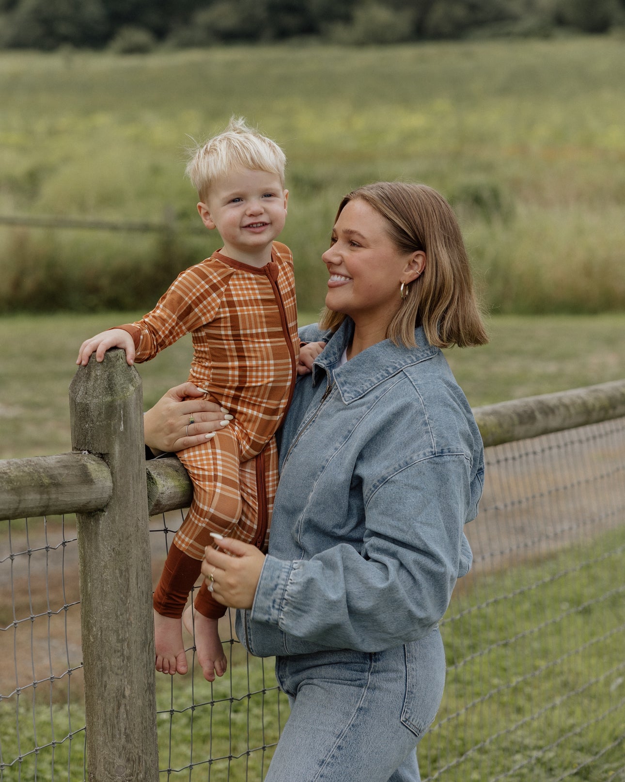 Say hello to Caramel Dipped, the first print in our Bre Sheppard Collaboration. This cozy, gender-neutral plaid was designed with crisp fall days in mind—warm caramel tones paired with soft cream and rust accents make it a timeless pattern that works for every little one.