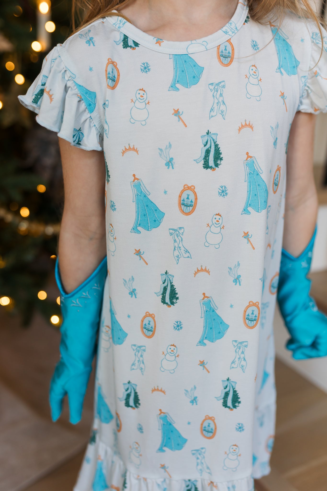 The Winter Princess Dress brings a touch of magic to every day. Part of the IMJ x Daryl-Ann Denner Collection, this dreamy print features sparkling gowns, snowflakes, and crowns — made for little ones who love a fairytale moment. Crafted from our signature viscose from bamboo, it’s buttery-soft, breathable, and made for play.