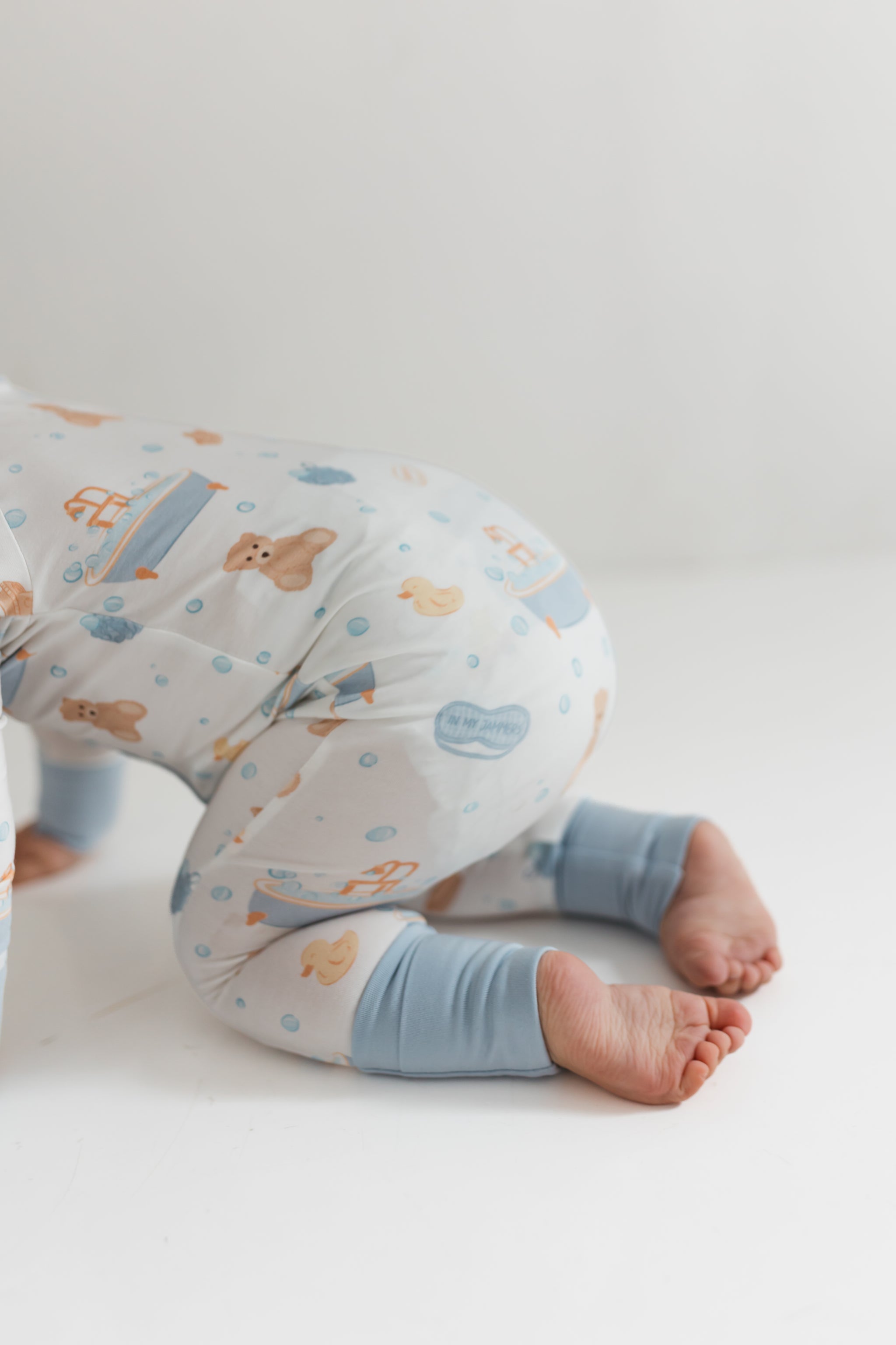 Say hello to Bath Time, a sweet and playful print that brings all the cozy charm of nighttime routines right to their pajamas. Filled with bubbly bathtubs, rubber duckies, soft teddy bears, and little soap accents, this cheerful design captures the magic of winding down after a long day. Bath Time is soft, soothing, and made for kids who love a little fun before bed.
