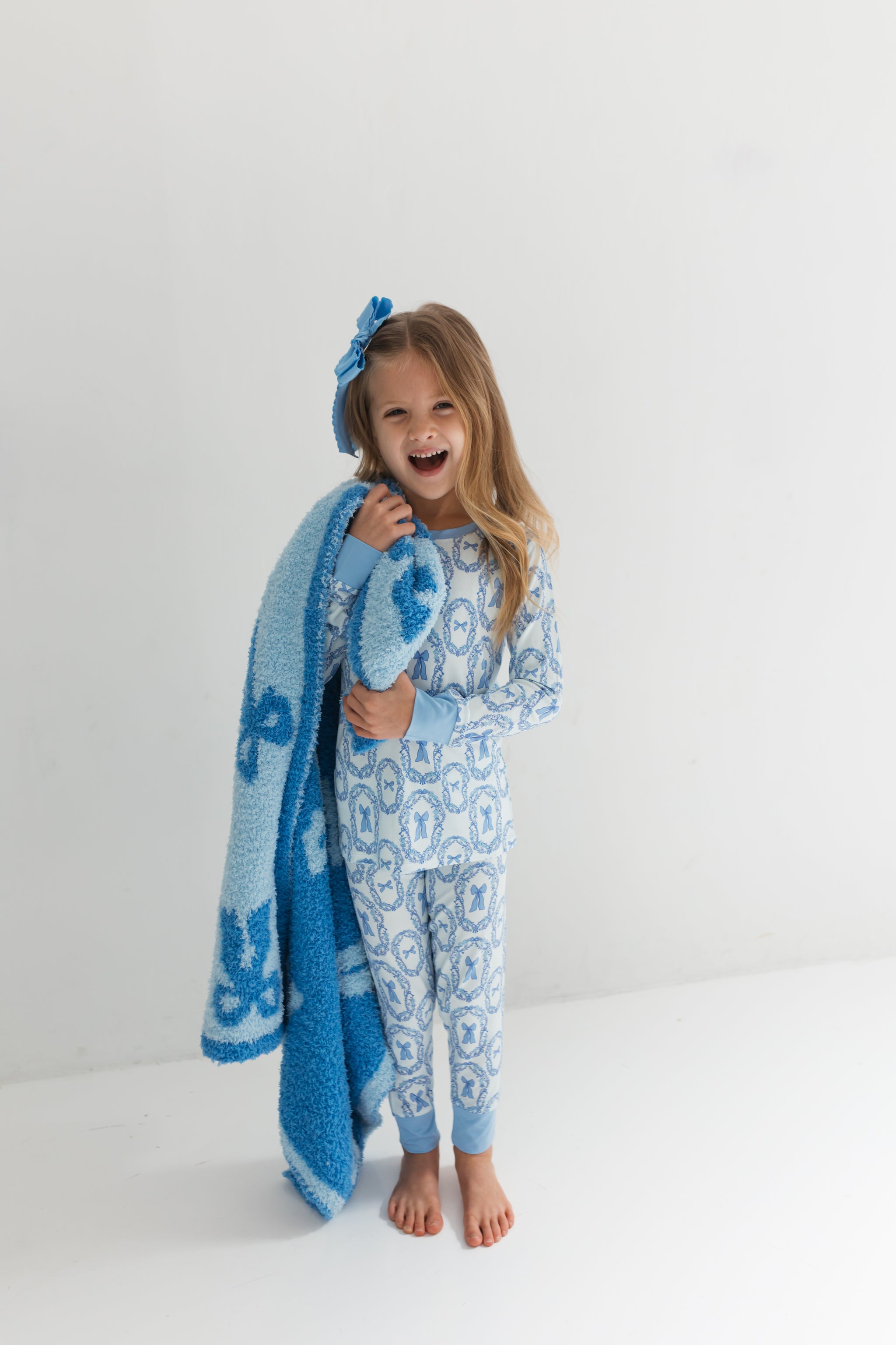 Blue Bow Plush Blanket