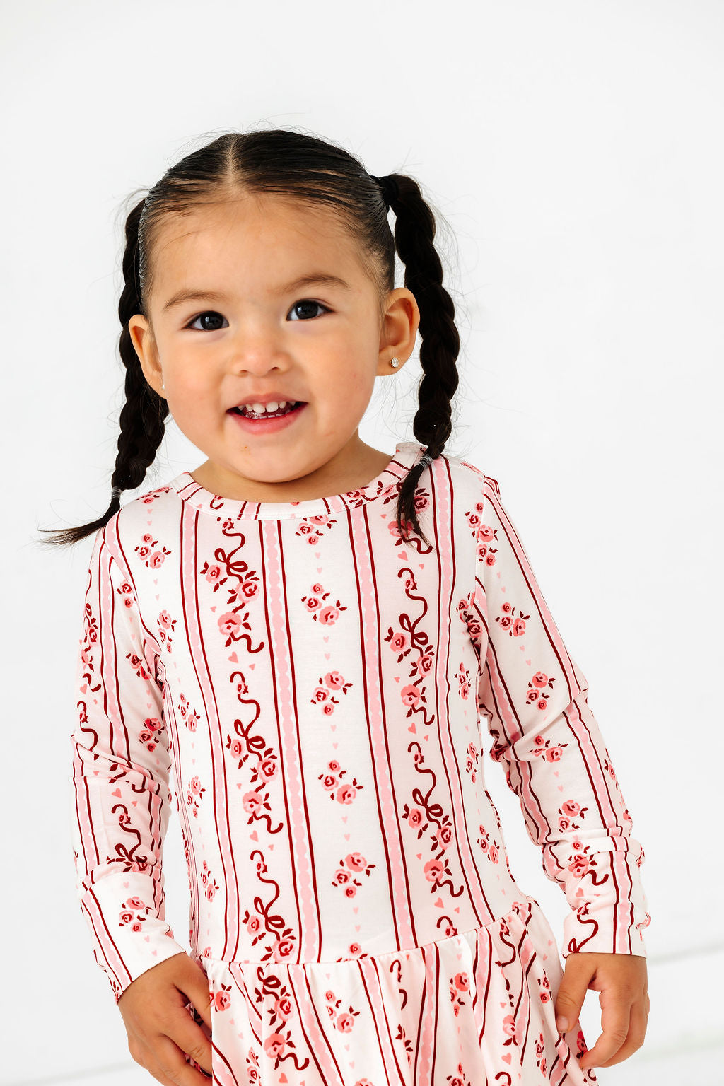 Meet Vintage Love, a timeless Valentine’s Day favorite designed to be worn long after the candy hearts are gone. This sweet pink and red print blends delicate florals with vintage inspired stripes for a look that feels nostalgic, cozy, and perfectly playful.