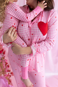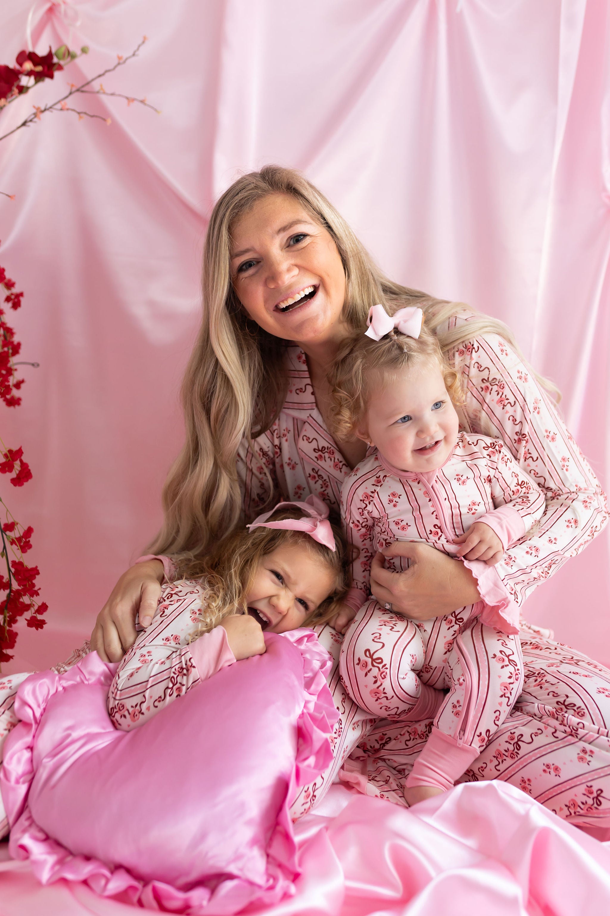 Meet Vintage Love, a timeless Valentine’s Day favorite designed to be worn long after the candy hearts are gone. This sweet pink and red print blends delicate florals with vintage inspired stripes for a look that feels nostalgic, cozy, and perfectly playful.